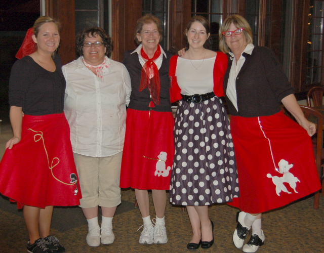 Workers at Baytowne Clubhouse were wearing Poodle Skirts. One of these gals is Connie who took all the pictures.
